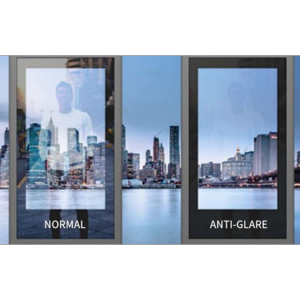 Anti-glare glass (sticlă mată tratată, cu textură), care dispersează lumina pentru a reduce reflexiile puternice. Ideală în medii cu lumină intensă sau directă – rămâne vizibilă chiar și în soare puternic